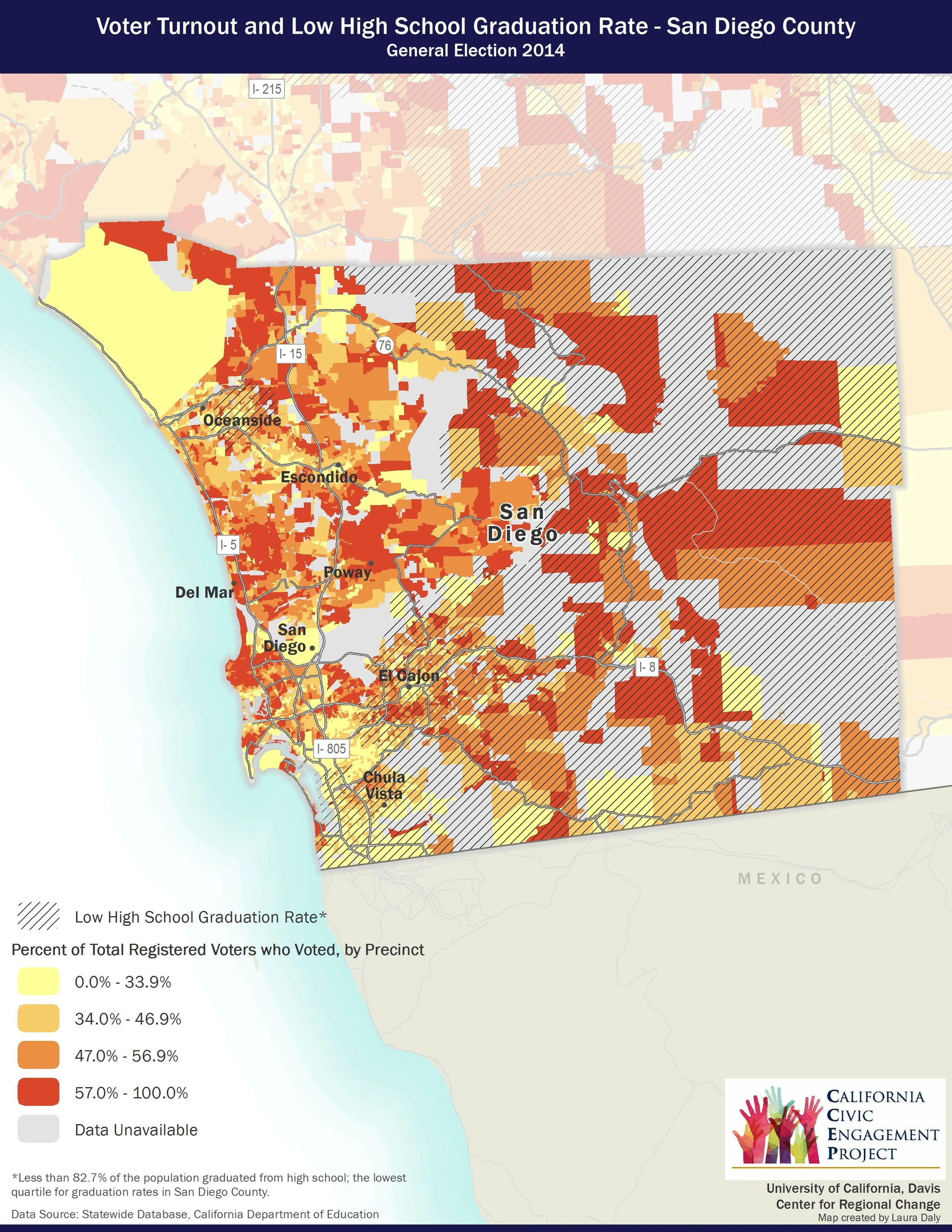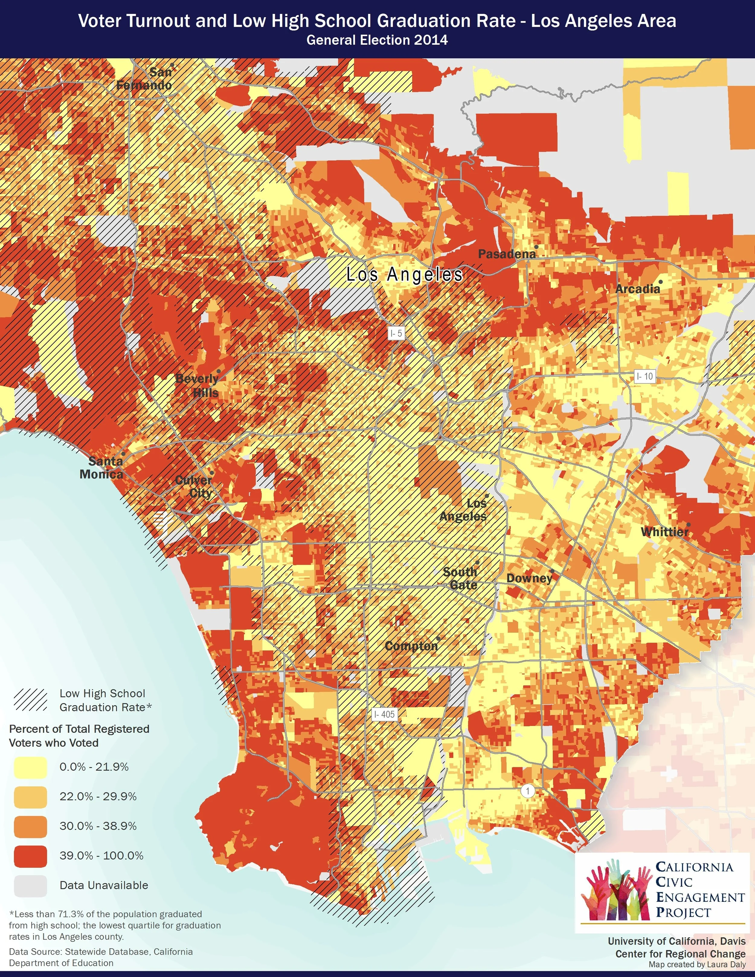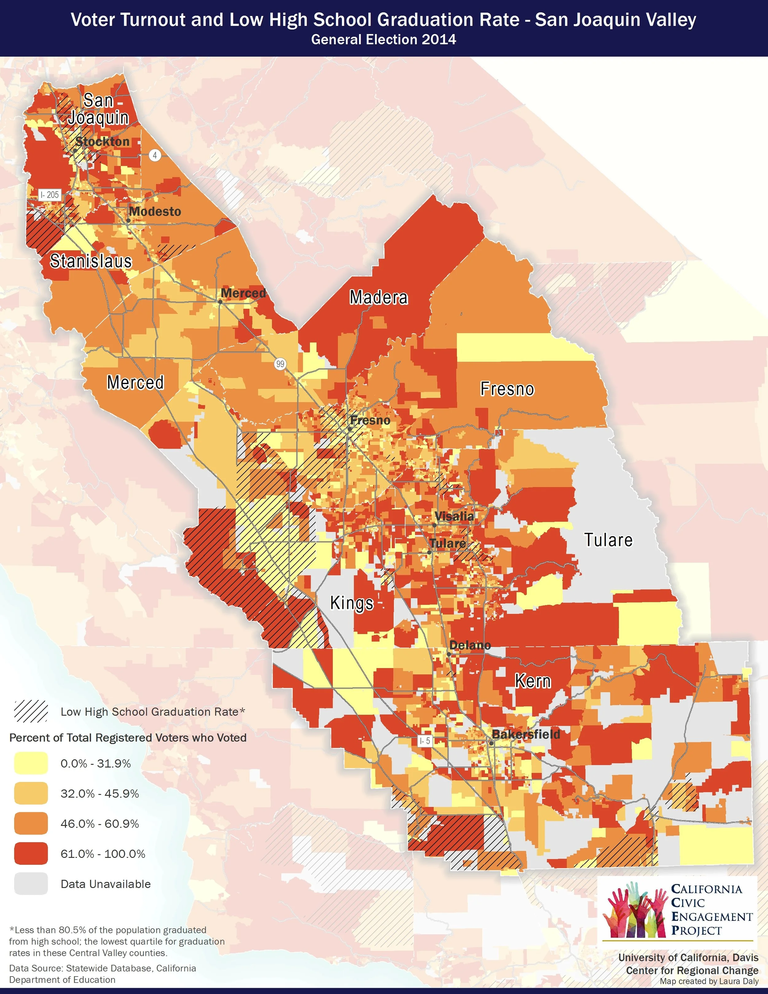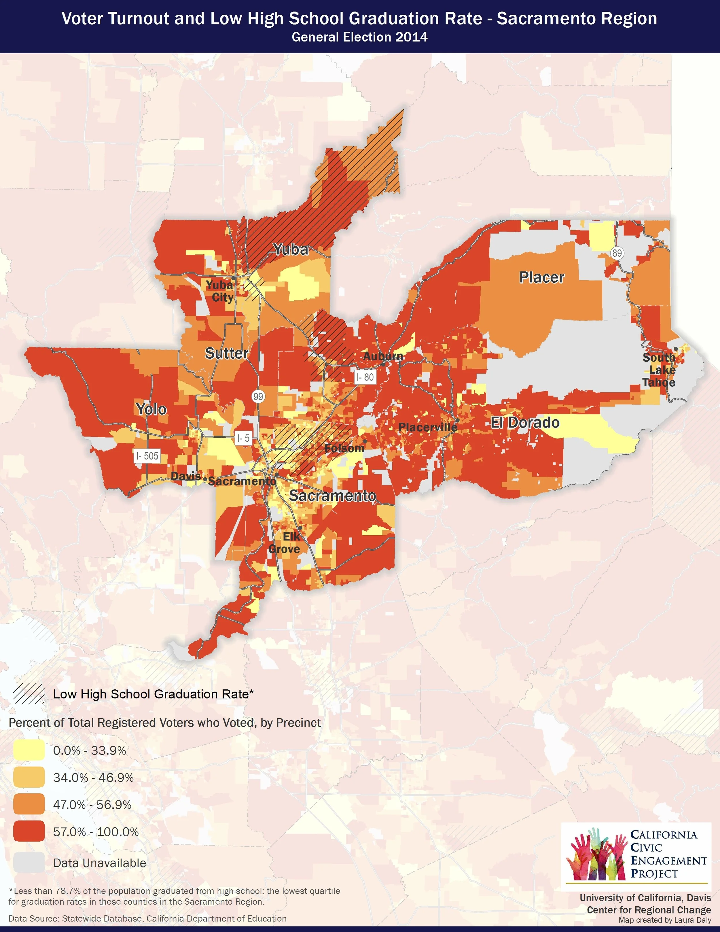 See the Mapping California's Politically Vulnerable Communities project page for interactive 2012 and 2014 general election maps.